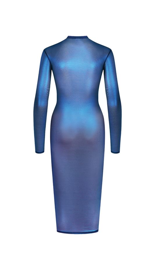 New With Tags: MAISON CLOSE BLUE ANGEL SHEER MIDI DRESS