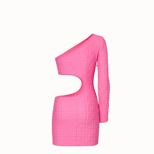 MUGLER H&M Pink Gathered one Shoulder Dress Neon Pink