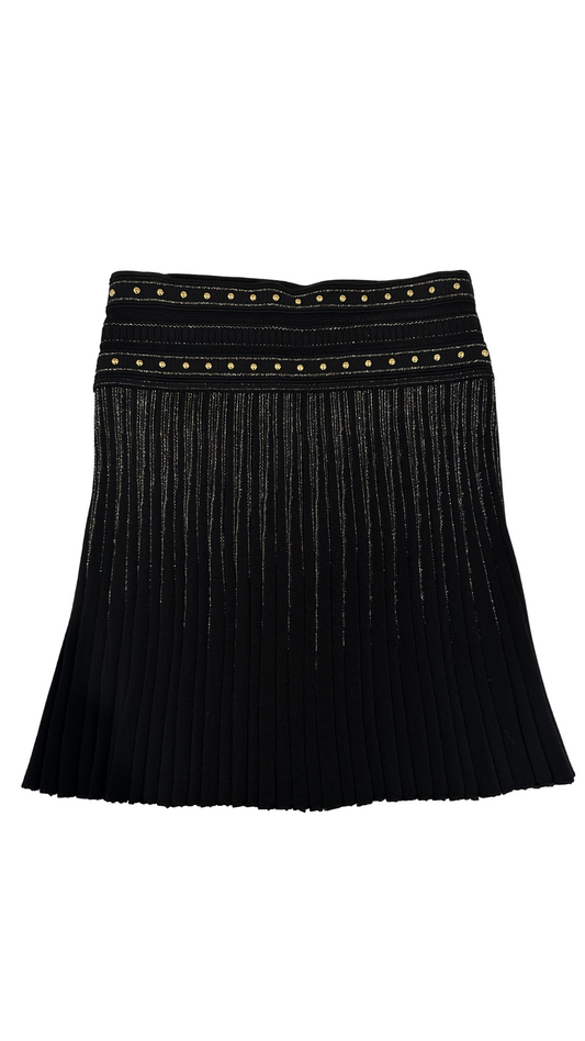 ROBERTO CAVALLI BLACK PLEATED SKIRT GOLD DETAIL
