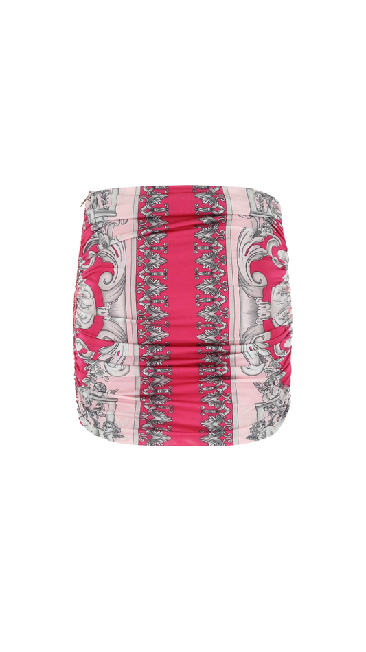 VERSACE GRAPHIC PRINTED RUCHED SKIRT